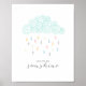 Gender neutral baby design by Shelby Allison featuring colourful rain drops and could doodles.
