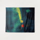 The original, abstract artwork by ZoeSPEAK on this Wall Tapestry was created from an original closeup photograph of a banana leaf. The undulating green curves of the huge, ribbed leaves form the background for the raindrops and colours, red and yellow.