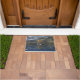 A short-focus render of a dark, rainy day in a northern mountain glen. In the background are grey-brown hills and a willow tree with its yellow fall leaves on an island in a silvery lake. In the foreground are raindrops frozen in midair, with one in the middle bringing the golden willow and its reflection into sharper focus.