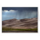 A storm drops rain on the Great Sand Dunes of the Sangre de Cristo mountains in southern Colorado. The seasonal Medano Creek (meaning sand dune in Spanish) flows at the foot of the dunes in spring and early summer. I visited the dunes once in the late summer, and there was no sign of the creek. Great Sand Dunes National Park and Preserve is in the San Luis Valley. Originally created as Great Sand Dunes National Monument in 1932, Great Sand Dunes National Park and Preserve was established by an act of the United States Congress in 2004. The park includes 44,246 acres, and the preserve protects an additional 41,686 acres. The park contains the tallest sand dunes in North America, rising about 750 feet (230 m) from the floor of the San Luis Valley on the western base of the Sangre de Cristo Range, covering about 19,000 acres. Researchers say that the dunes started forming less than 440,000 years ago. The dunes were formed from sand and soil deposits of the Rio Grande River and its tributaries that collect against the Sangre de Cristo Mountains to the east.