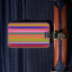 An abstract art design of horizontal paint stripes in rainbow colours of pink, turquoise, blue, green and yellow. This Modern, contemporary arty design is perfect for a stylish design.