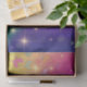 Beautiful romantic tissue paper design featuring colourful butterflies on a gradient rainbow background with abstract fairy lights and sparkles.