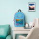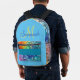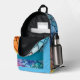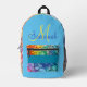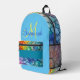 This fun backpack features a pattern of alcohol and ink, geometric shapes that are edged in black. The front panel is a pretty blue and the large front pocket has two stripes of the pattern on it with a darker blue in between. It's monogramed with your name in dark blue and your initial in yellow. Just use the "Personalize this template" to put your own name and initial in and you'll have an exciting, custom made backpack that is unique to you and you alone!
