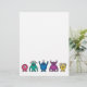 a family of cute / kawaii alien monster cartoon / illustrations in rainbow colours (pink, green, blue, purple and yellow)