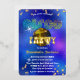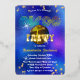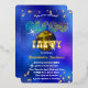 This funky custom party invitation features a retro disco theme on a metallic, pearl style blue background. A sparkly disco ball is placed in the centre. The word "Disco" is printed above it in a groovy rainbow font. The word "Party" is printed below it in real gold foil. The name of the guest of honour is printed in a matching gold foil elegant font. You can personalize the invitation to include your own event information or other custom text. Faded lights border the top and bottom portions. It's great for a bachelorette party, birthday, or other special disco themed event.