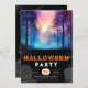 Rainbow and Moonlit Forest Black Halloween Invitation