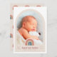 Partagez votre nouvelle joie avec ce faire-part de naissance photo unique. Ce faire-part de naissance est en forme d'arc encadrant votre photo préférée de nouveau-né. Un arc-en-ciel dessiné à la main dans la palette du désert cravate ce design moderne ensemble.