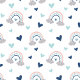 A dreamy mix of pastel pink and deep navy blue, with soft rainbow arcs