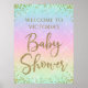 Rainbow baby shower welcome sign with pretty gold letters on a rainbow and gold glitter background. This rainbow baby shower welcome sign is easily customized for your event by simply adding your details. You can also remove the background and add the colour of your choice.