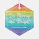 Beautiful gay pride Christmas ornament in pretty rainbow colours that reads Be Merry and Bright. Be loud and proud with gorgeous LGBTQ holiday cheer with an LGBT couple's names in white.