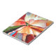 with original design from watercolour painting by artist Sacha Grossel of multi coloured, rainbow begonia flower. This macro, close up orange and red floral design is bright and colourful, showing the abstract form of the botanical inspired flower.