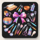 Bring charm, elegance, and personality into your kitchen with these beautiful Coquette Bow kitchen beverage coaster, featuring a stylish pink bow surrounded by essential kitchen tools. Designed in soft pastel tones on a classy black background, these towels highlight everyday kitchen essentials including a chef’s knife, cutting boards, mixing bowls, measuring cups and spoons, spatulas, tongs, whisks, ladles, kitchen scissors, a can opener, cleaning brushes, and more.