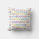 This pillow features a repeating bicycle pattern, in rainbow colours.