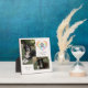 This personalized design includes space for two custom photos along with your pet’s name and years, creating a meaningful tribute that captures both the beginning and the lifetime of love shared. The combination of artwork and photography tells a complete story in one timeless display.