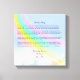 This beautiful custom pet sympathy wrapped canvas features a muted rainbow background and the Rainbow Bridge poem for a MALE pet. It is customizable to add your pet name and dates, and is a perfect memorial for your special angel boy. The print shown is 12 x 12; smaller sizes work best for this piece. The female version is sold separately. The canvas print is part of the Just Love Rescues sympathy collection.