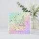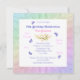 A rainbow of colours, pink flowers and lavender butterflies featured on girls 14th Birthday party square invitation. Name on front and all information on back of the invitation may be personalized using the template provided.
