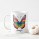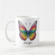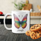 Brighten up your day with our personalized Rainbow Butterfly coffee mug. This enchanting mug showcases a delicate butterfly drawing in vibrant rainbow colours, bringing a burst of colour and joy to your morning coffee or afternoon tea.