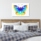 Rainbow, realistic, artistically drawn, bright colours peacock butterfly with textured detailed wings on white background. Rainbow butterfly.