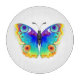 Rainbow, realistic, artistically drawn, bright colors peacock butterfly with textured detailed wings on white background. Rainbow butterfly.