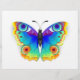 Rainbow, realistic, artistically drawn, bright colours peacock butterfly with textured detailed wings on white background. Rainbow butterfly.