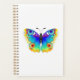 Rainbow, realistic, artistically drawn, bright colours peacock butterfly with textured detailed wings on white background. Rainbow butterfly.