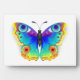 Rainbow, realistic, artistically drawn, bright colours peacock butterfly with textured detailed wings on white background. Rainbow butterfly.