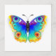 Rainbow, realistic, artistically drawn, bright colours peacock butterfly with textured detailed wings on white background. Rainbow butterfly.