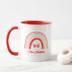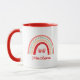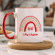 This cute personalized rainbow mug is a sweet gift for teachers or anyone who loves cheerful, whimsical design. Featuring a hand-drawn style rainbow in warm shades of red, blush, green, and orange with leafy and scalloped detailing, the center showcases a sweet butterfly for an extra touch of charm. Below the rainbow, add the teacher's name or a short phrase in playful handwritten red script, making this mug uniquely personal and meaningful. With a coordinating red interior and handle, this mug is as visually appealing as it is functional—perfect for brightening up a classroom desk, home office, or morning routine. Whether used for coffee, tea, or decorative display, this custom name mug is ideal for teacher appreciation gifts, end-of-year tokens, or everyday moments that deserve a splash of color and joy. Celebrate someone special with a cup that’s equal parts practical and heartwarming.