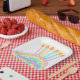 This fun rainbow cake birthday party design adds a pop of fun to your party planning. It features a hand drawn rainbow birthday cake with candles on top and white sprinkles. See the whole matching collection.
