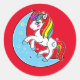 Rainbow Celestial Blue Moon & Stars Unicorn Classic Round Sticker