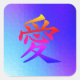 Rainbow Chinese Symbol Ai Love Blue/Purple Sticker