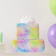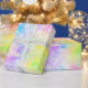 This colourful wrapping paper features a rainbow cloud sky print in a neon tie dye style.