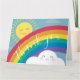 Vierge à l'intérieur pour un message personnel, merci à vos invités et leur faire sourire avec cette adorable carte de remerciements. Doté d'une adorable petite illustration originale d'un soleil et d'un nuage heureux et d'un arc-en-ciel lumineux. Cette carte est en coordonnées avec la collection de fête d'anniversaire de l'arc-en-ciel.