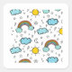 Rainbow Clouds Sun Stars Pattern For Kids Square Sticker