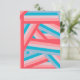 This note card has a striped design of groups of five stripes crisscrossing each other across the design blue, pink, peach, and coral. Add your own personal message on the back. If you like the design but prefer different colours, message me.