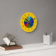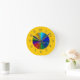 If you love colour, then this is a must-have wall clock! Features a vibrant circle of rainbow hues exploding in the centre of the clock, and around the outer perimeter is an equally vibrant warm mustard yellow! Numerals are easy to read, and have a metallic look.