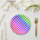 image of rainbow coloured chequered pattern. colours range from red, orange, pink, purple, blue and green.
