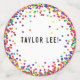 Rainbow coloured confetti decor is perfect for you son or daughter's birthday! Featuring your child's name, age and "Party Time" confetti with fun rainbow coloured confetti circles sprinkling all around.