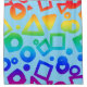 The shower curtain has a Striking graphic of cubic shapes in rainbow colours starting with red in the top green along the middle and blue and purple in the bottom. It’s a striking addition to any bathroom, but wants to make a statement. The overall background is a light blue.