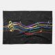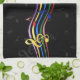 Rainbow coloured musical notes floating on rainbow coloured musical lines on black and grey musical note background . Any name can be added by clicking on the customize button. Perfect for the music lover. sgb01