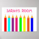 A bright kids personalized name poster for their bedroom with rainbow coloured colouring pencils. A bright modern poster suitable for a boy or girl and so easy to personalize with a name.
