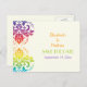 Rainbow colours damask wedding Save the Date Announcement Postcard
