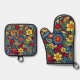 Rainbow Colours Flower Paisley Design Oven Mitt & Pot Holder Set