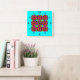 Rainbow Colours Patchwork Geometric Repeat Pattern Square Wall Clock
