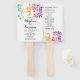 Rainbow colours colourful scroll leaf gay lesbian wedding program hand fan, featuring a colourful scroll leaf in rainbow colours on white background.