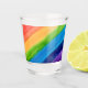 This shot glass is decorated with watercolor stripes in rainbow colours.