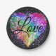 Fun rainbow colours sparkling graffiti sequins heart design paper plates, XOX, love and Kisses- valentine inspired theme design. Customizable!