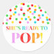 Rainbow Confetti She's Ready to Pop Classic Round Sticker