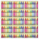 Fabric features rows of rainbow crayons, printed on a pale yellow background. Created from an original marker illustration.