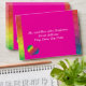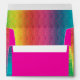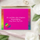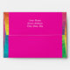 A simple yet elegant design that puts the important information front and centre in an easy-to-read fashion. The solid background bordered by a splash of rainbow colour makes this envelope hard to overlook in the mailbox! Chose any colour you like for the background (shown here in hot pink). You may choose from the provided heart or butterfly as your accent, or upload an image of your own choosing. Use the provided template fields to quickly personalize with your information. (If you prefer to hand-address the envelope, leave the text filed blank.) Click "customize further" to change font, size, colours, and positions.